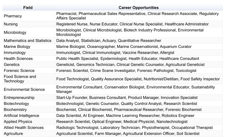Imagine stepping into a role where you contribute to groundbreaking research in biotechnology, work on innovative solutions in environmental science, or apply your analytical skills in data science and artificial intelligence. Whether you’re passionate about pharmaceuticals, eager to delve into the world of marine biology, or excited about emerging fields like genetic counseling and forensic science, there is a career waiting for you that aligns with your interests and aspirations.